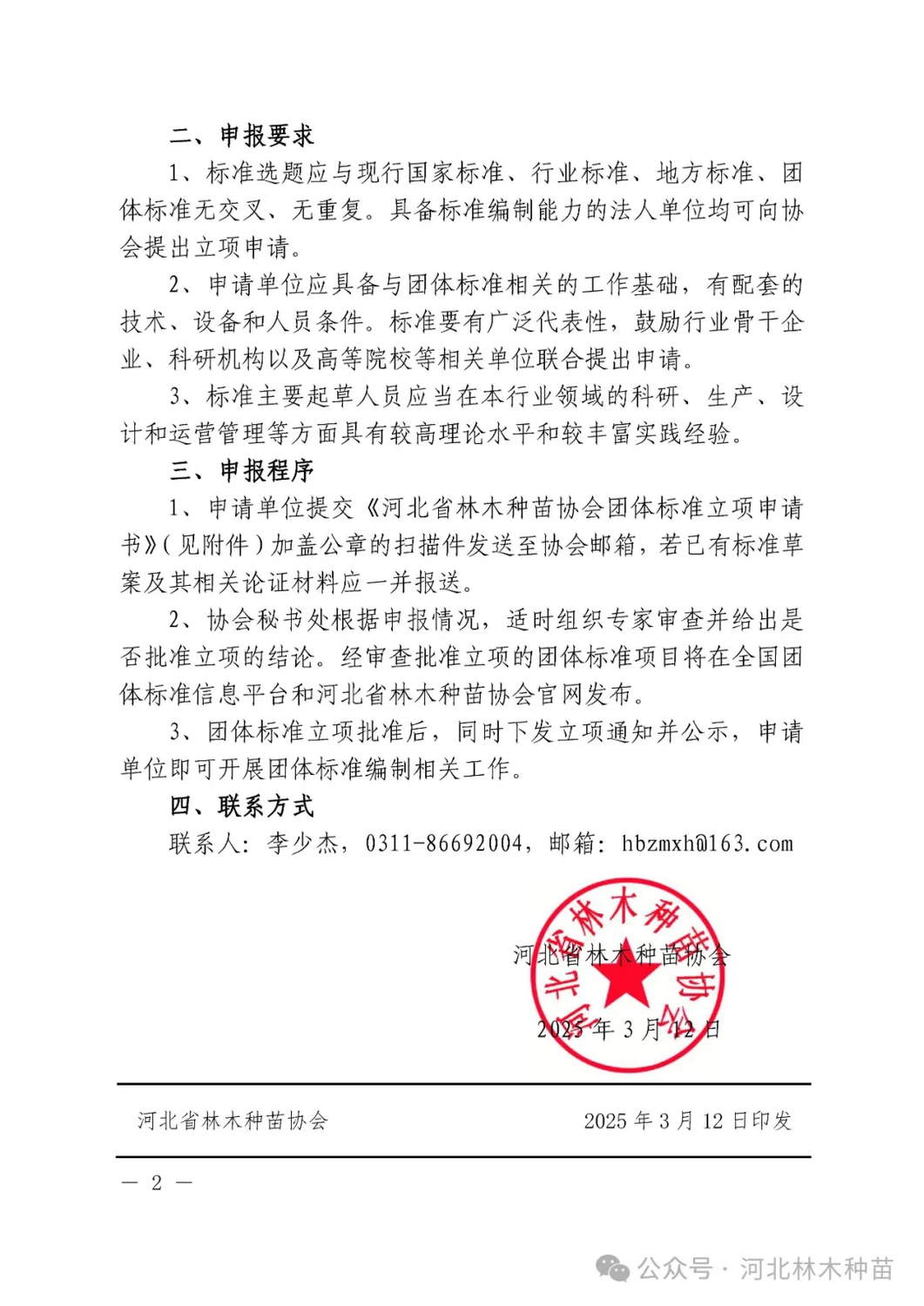 河北省林木种苗协会关于征集2025年团体标准立项工作的通知