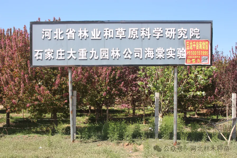 石家庄大重九园林工程有限公司总经理田卫海陪同考察了苗圃基地,并对基地建设基本情况、海棠苗木培育、市场销售做了详细介绍;考察组对